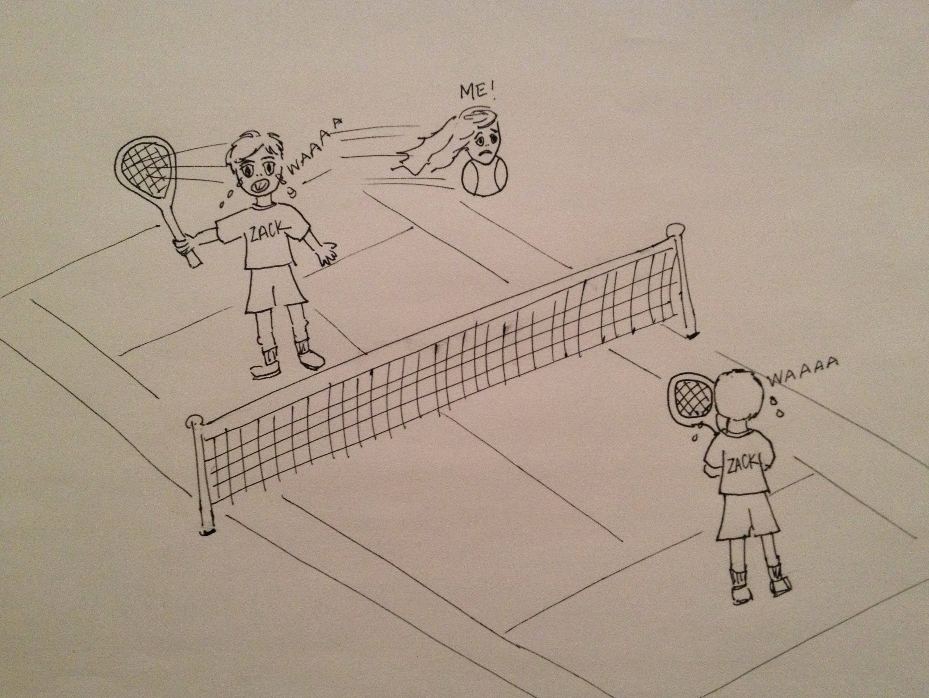 He shorts out like this all day long. I’m done on the potty. No, I’m not done yet! I’m not hungry for dinner. I want dinner! Tuck my blanket in. I don’t want my blanket! It feels like I am the tennis ball being whacked back and forth in the most epic, endless tennis match in US Open history.